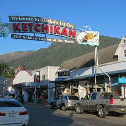Ketchikan ist die Lachshauptstadt der Welt, außerdem die erste Stadt in Alaska und der regenreichste Ort in Alaska.