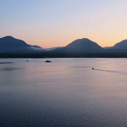 Am Vormittag nochmal die Natur vorbeigleiten lassen und Anfahrt auf den Hafen vom Helikopterdeck genießen. Dann geht es wieder in die Natur in den Tonga-Regenwald mit Zedern, Western Hemlock, Lachs, Adlern, verschiedenen Vögeln und Schwarzbären. Wir haben sogar eine Bärenmama mit ihrem ca. 5 Monate altem Kind gesehen. Das ist kein Zoo gewesen, auch wenn es sich ein bisschen so angefühlt hat. Am Ende noch ein Sonnenuntergang und springende Fische.Read more