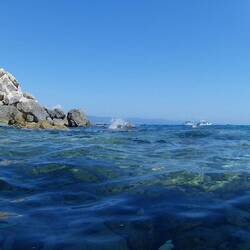 Mit dem Surfbrett sind wir um den Teufelssattel gepaddelt und waren Schnorcheln.