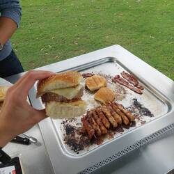 Petit réveil avec les pancakes qui mettent bien. Maintenant, on a notre rituel : pancake le matin = pancake au "bacon 'n egg" le midi avec le surplus ! Ça nous chauffe tellement que FloWeiterlesen