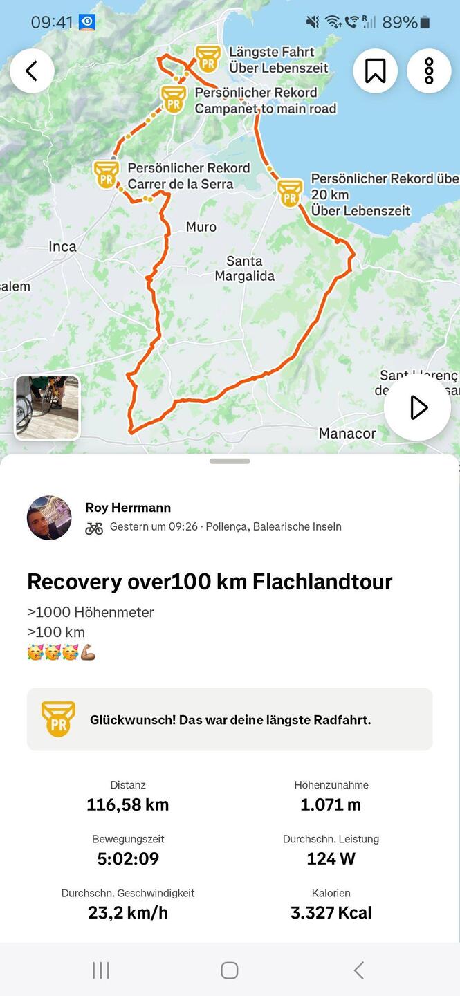 Was gibt's zu heute zu sagen... es sollte eine entspannte 145 Puls Tour werden, Zone 2. Aus dieser >100 km Tour wurden zwischendurch mal kranke Passagen mit >32 km/h.