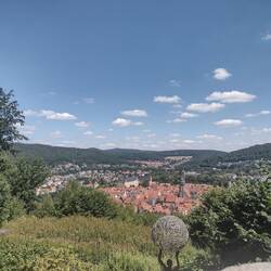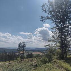 Nach der Baxmann Baude erwartete uns der Anstieg zum Hohenstein. Und Leute, ich habe das Ding verflucht. Steil steiler am steilsten. Den einzigen Anstieg der annähernd an diesen Ran kam kannte ich bisher nur vom Rheinsteig, nämlich den des bitchberg (soulboy und Co wissen welchen ich meine). Aber dafür hat der Ausblick dann dort oben den Tag gerettet, selten habe ich so einen tollen Fernblick gehabt. Einem Radler zufolge sollte sogar das Siebengebirge von dort zu sehen gewesen sein mir fehlte allerdings die Konzentration um dies zu bestätigen.
