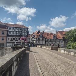 Heut morgen habe ich mich vom hungrigen Bären verabschiedet und habe mich per Bahn auf den Weg nach Hann. Münden gemacht um Robin einen Besuch auf dem Trail abzustatten. Da ich ein wenig früher als er dort angekommen bin, konnte ich mir noch die Altstadt ganz gemütlich anschauen. Ich mag ja, schon allein aus fachlichem Interesse heraus, Fachwerk und freue mich jedes Mal aufs neue wenn ich einen Fachwerk Stadtkern zu sehen bekomme. Was mir besonders an dieser Altstadt gefiel war die Tatsache, dass man sogar noch die ursprüngliche Entwicklung der Stadt am Wegenetz erkennen konnte. Sehr schön und auf jeden Fall Erhaltenswert. Ich hoffe die lokalen Zimmerleute, Mauerleute und Dachdecker kommen ihrer Verantwortung nach.