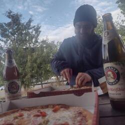 An der Hütte haben uns die wirren der NST-Pizza-Massaker eingeholt. Nach dem es schon auf dem Rheinsteig (Soulboy vs Ronny vs der Fernwanderer), Bei Schleswig (WWW vs Penny) und auf dem HSW (Robin vs Louise) zu verheerenden Auseinandersetzungen kam mussten weitere Teigscheiben ihre Existenz auf dem Trail einbüßen. Dazu gab's ein wunderbar prikelndes Bier, was diesen Abend nochmal um einiges gemütlicher machte.