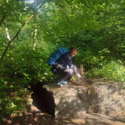 Den Anfang macht der hungrige Bär. Heut mittag haben wir uns in Rinteln am Bahnhof getroffen und sind dann nach einem schnellen Mittagessen zum gestrigen Ausgangspunkt von Achims Trail gefahren. Und direkt gab's den ersten Anstieg. Nach dem ich seit meiner Osterreise am Rheinsteig keine Berge mehr unter meine Sohlen bekommen habe, war diese Nummer natürlich extrem anstrengend, hat aber auch wieder die Lust auf mehr und den Ehrgeiz geweckt. Durch den Wald ging es dann heute den ganzen Nachmittag über die Bergkämme und Achim und ich konnten uns in aller Ruhe über Gott und die Welt unterhalten. Gegen frühen Abend sind wir dann noch über einen Biergarten, welcher direkt an einem Steinbruch liegt und zum Informationszentrum der Schillat-Höhle gehörte. Für die Höhle fehlte uns ein wenig die Zeit, die brauchten wir noch bis Ladenschluss für lecker Bratwurst und Radler.