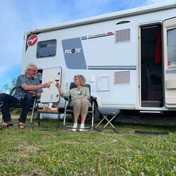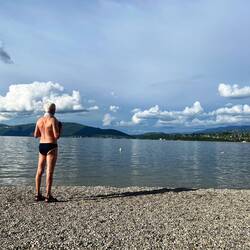 … am Abend erreichen wir das Südufer des Lac du Bourget. Unser Stellplatz liegt direkt am Seeufer. Der See lädt zum kurzen Baden ein.