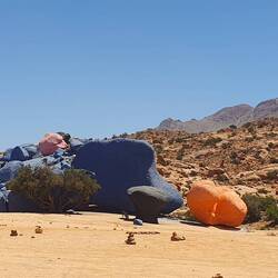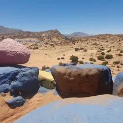 ..sind wir heute in Tafraoute angekommen und haben unser Lager am Fuße von mächtigen Gebirgszügen aufgeschlagen.
