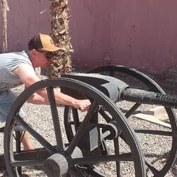 Blaue Farbe, gefühlt ein Leben an Zeit und malt die Wüste blau.