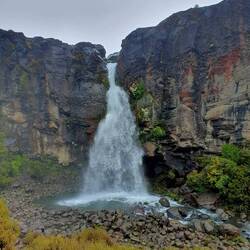 Die Taranaki Falls stürzen rund 20 Meter über einen alten Lavastrom, der durch den Ruapehu-Ausbruch vor 15.000 Jahren entstanden ist.