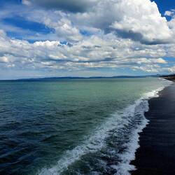 Der Wainuiomata Beach liegt eine halbe Stunde von Wellington entfernt an der Mündung des Wainuiomata River in die Cookstraße.