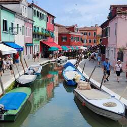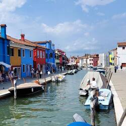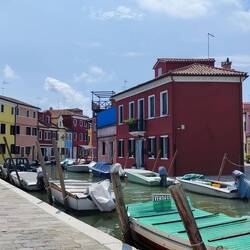Heute haben wir zum ersten Mal Burano besucht. Die Insel hat uns mit ihren bunten Häusern sehr gut gefallen. Auch die Kirche war beeindruckend, selbst dort findet sich das bunte Glas.