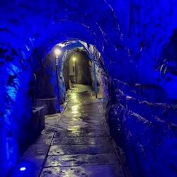 Gesagt, getan! Der liebe Gott klopfte mit seinem Schöpungfungsstab auf den Fels, murmelte die Worte „Abra-Kadabra-dreimal-Rösti-mit-Speck“ und „zack!“ floß warmes, Gesundheit förderndes Wasser aus dem kalten Stein. Die Geburtsstunde der Taminaquelle und im Nachgang Bad Ragaz.