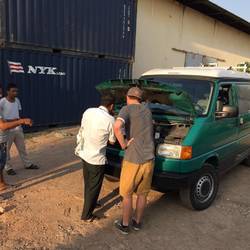 Um ca. 15:00 Uhr bekamen wir einen Anruf "Come to port" - Wieder ins TukTuk und ab zum Hafen - Wir wurden von A nach B geschickt, bis wir schlussendlich an einem Kran direkt am Meer standen.