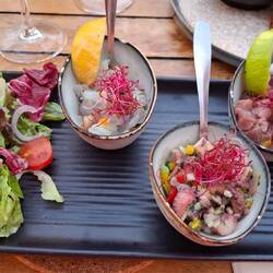 Fahrt von Bastia an der östlichen Küste von Cap Corse nach Macinaggio. Dort tolles Abendessen im Vela d'Oro.