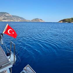 Der „Segeltag“ bringt uns vor allem eines: KEINEN Wind. Wir motoren einen grossen Teil der Strecke nach Kas, die See ist spiegeglatt, wir vertreiben uns die Zeit mit Jassen. Erst 5sm vor Kas kommtLæs mere