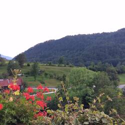 The highlight of the day was dropping back down to the Soca River a couple of times where we could swim and watch the Kayaks and River Rafts go by. Our small family hotel is once again perched on a hillside surrounded by emerald green fields and sheer mountain backdrop.Lue lisää