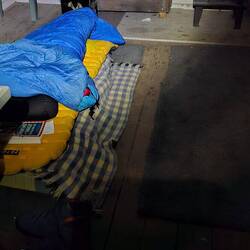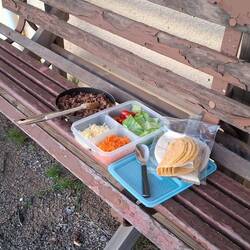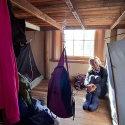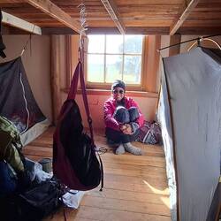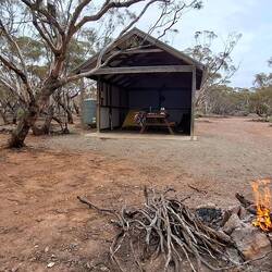 We were able to set up our tents in the small covered shelter -some rain was forecast but never arrived.