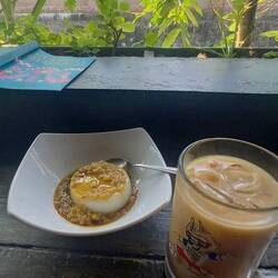 Cooking class (jackfruit curry) and a walk through the rice fields to a local Cafe, to have iced coffee and rice pudding with passionfruit.