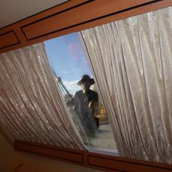 Up 9ish. Window cleaner with a head for heights outside - abseiling down the pyramid!