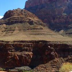 Up 7am. Picked up 8.15 for Grand Canyon trip. 6 + pilot per helicopter. Used birthday vouchers from Anne, Peter and Chris to pay for part of trip - special birthday outing.