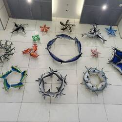 While wandering through the early morning desolate departure hall of Miami airport, we found an amazing Colombian coffee shop. More art decorated the spaces with fascinating flooring designs of corals and fish inlaid in the chip-rock concrete.