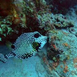 Back at the dock, we quickly offloaded our gear onto another dive boat and headed out for a short trip to the "Small Wall" dive site. It was another spectacular dive, full of reef activity. A large, pale puffer fish cautiously watched us as we descended deeper along the wall, and barracuda dotted our route like silent sentinels.
