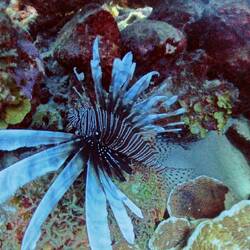 In the afternoon, we headed southwest to Eighteen Palms. Descending to 60 feet, we were greeted by shimmering Tarpons making multiple passes. Rumor had it a shark made a brief appearance, and we spotted another turtle, a lionfish, a crab, a couple of tuna, and even a lobster.