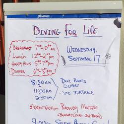 It was an early start to an action-packed day. After hauling our gear down to the lockers, we grabbed a quick light breakfast before the mandatory dive briefing. The dive shop buzzed with energy as divers convened, prepping for the day ahead. There are about 60 divers for this year's event.