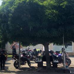 Wir sind mit fünf Maschinen gestartet jetzt in Hildesheim sind noch drei Motorräder dazu gekommen acht Leute acht Maschinen und fahren jetzt weiter und treffen den Rest in Winterberg