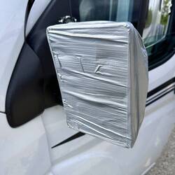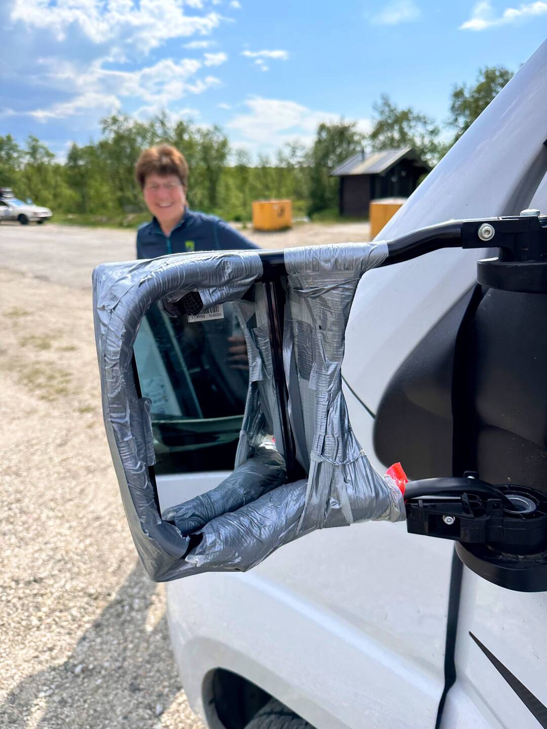 Auf der Strecke haben wir einem deutschen Paar einen neuen Spiegel gebastelt, da ein entgegenkommendes Wohnmobil ihren leider abgefahren hat.