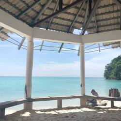 Our first destination was an hour's boat ride away. The water was so calm that many people slept on the ride out, including me and Franks. Bamboo Island was the first stop, where we had an hour of free time at a lovely beach. We could snorkel on the rocky side of the beach, or we could swim on the sandy side of the beach - we did both!
