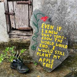 It was rainy and stormy all night, but the rain stopped by the time we started walking around 8;30 this morning. Our walk started with a steep climb, which was unexpected because I thought we wereRead more