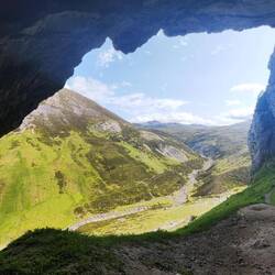 Wir übernachteten ja am Parkplatz der Knochenhöhlen und da wollten wir dann auch morgens nach dem Frühstück hin. Ein relativ leichter Aufstieg in den Berg durch ein schönes Tal.