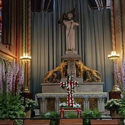 Dropped the car back and walked to see the castle. Sheltered from thunderstorms in Sainte Pierre Eglise