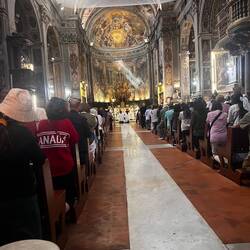 We continued to St. Peter’s Basilica, where we took time for confession, a beautiful moment of reflection and renewal. From there, we made our way to Santo Spirito Church for the 9:00 a.m. English Mass. It was deeply meaningful to be there—to hear the pilgrim message and participate in the Eucharist among fellow travelers of faith.