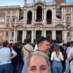 Back at our apartment around 6:45 p.m., something stirred in me. I got a second wind and felt called to walk over to Santa Maria Maggiore, hoping—just maybe—to catch a glimpse of Pope Leo. As I entered the square, his car pulled up. Moments later, the barriers opened, and I joined the crowd near a large screen. Fifteen minutes passed, and then—there he was—appearing on the balcony to bless the people. It was a moment I will never forget. On our very last evening, God opened one more door, gently reminding me of His presence at every step of this journey.