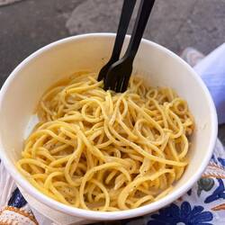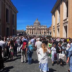 Afterward, we treated ourselves to some of our Roman food favorites: slices from Alice Pizzeria, known for its light, crispy crusts, followed by creamy cacio e pepe from a neighboring shop. As noon approached, we stayed near St. Peter’s Square to experience the excitement of the Pope’s Sunday benediction. Standing among the crowd, waiting for his words of blessing, we felt the unity and hope that this city brings to so many.