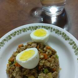 13:43 - La comida de hoy ha sido abundante (adjunto foto). Calabacín y berenjena, tortilla francesa con verduras, arroz y curry. Ahora vamos a ir a una exposición sobre algo random porque su primaLeer más