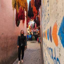 Heute beginnt der Tag mit einer Stadtführung. Vorbei an der Moschee «Koutoubia» geht's anschliessend in den Souk. Wir besuchen mittendrin eine Färberei🎨, laufen durch das Handwerker-Viertel🛠もっと詳しく