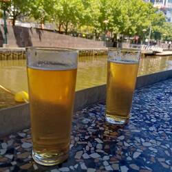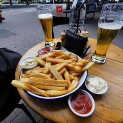 Per Bus in die Stadt. Shoppen, Frühstück in der Riverstedt Mal. Zurück zum Brighton Beach. Nach Mitgliedschaft ham ma Bier und Essen bekommen. Am Strand zurück zum CP.