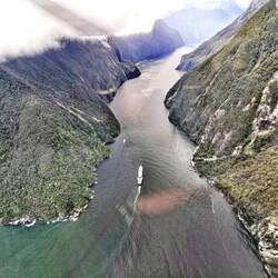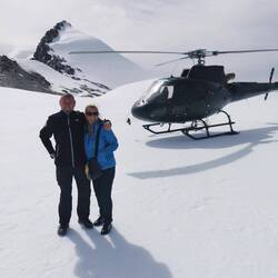 Blauer Himmel beim aufstehen. Bestätigung Flug findet statt. 10.00 Uhr mit Piloten Matt auf zum Milford Sound. Anschließend Gletscher Landung auf Mt. Tütoko.