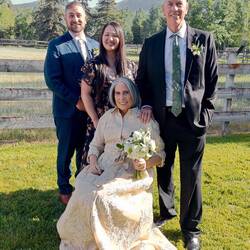 The day of the wedding dawned and we rocked on up to the wedding venue to help with the setting up. It was a lovely outdoor setting at Chase's childhood home, owned by his parents Luanne and John, and with a lovely mountain backdrop. Once the set-up was complete we headed off for lunch and then back to our respective hotels/airbnbs to get ready. Five o'clock came round and the celebrations began. Oh what a night!! We had laughter, we had tears, we had good food, we had good company, we had dancing, we had fireworks, the list goes on. Even the weather was perfect although it did get a little cooler in the evening. There were so many highlights, too many to mention, but an enduring memory would have to be seeing Beth, the mother of the bride, walking down the aisle aided by her son Ian. Beth has been unwell and it was touch and go whether she would even make it to the wedding so to see her looking so beautiful and to see her determination was simply the best. Beth, if you are reading this, just know how proud we are of you. Thank you Molly and Chase for such a memorable day.
