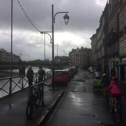 eingepackt wurde alles noch im trockenen. dann gings weiter mit etwas nieselregen, der uns eigentlich noch nie von der fahrt abgehalten hat. und auf einmal kam der starke regen. wir beschlossen, bis zur nächsten unterkunft weiter zu fahren. die fahrradroute führte uns neben jacks burger vorbei und dort haben wir uns aufgewärmt. der regen hörte auf und wir starteten durch. weiter gings entlang des fahrradweges, bis er abrupt endete (siehe foto). ein wendemanöver mit der carla war unmöglich, also mussten wir mittendurch. stadtbesichtigung durch bayonne und anschliessend starker regen bis zum bitteren ende. der camping wollte uns nicht mehr in einem mobilehome; wir seien zu spät (um 15.00 Uhr gibt es kein check-in mehr); also flüchteten wir ins b&b hotel. die kinder geniessen ihr eigens 4er zimmer und wir ebenso. moritz war noch so lieb und hat uns die foto geschickt von gestern.Read more