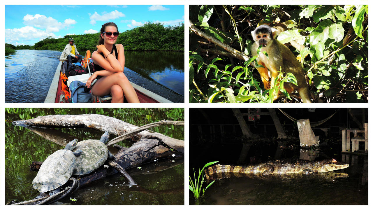Vom Boot aus Tiere beobachten: Schildkröten, Papageien, Affen, Kaimane, Glühwürmchen, Faultiere, Rosa Delphine, Fledermäuse und Vögel aller Art; dabei zuschauen, wie Schildkröten mit einer Reaktionszeit von etwa 10 Sekunden ihren Sonnenplatz verlassen und ins Wasser springen; bei Nacht Kaimane suchen und bloß nicht ausflippen, wenn plötzlich ein riesiger Kaiman unter dem Boot durchspringt; durch Moorwasser stapfen um Ana (konda) zu suchen, während in den Gummistiefeln gefühlt schon mehr Wasser steht als außenherum, man schier von den Moskitos gefressen wird und der einzige Trost ist, dass es sehr unwahrscheinlich ist, eine Anakonda zu finden; versuchen mit diesem kontroversen Gefühl klarzukommen, wenn man auf einmal tatsächlich eine Anakonda findet, man sich eigentlich glücklich schätzen sollte, einem aber übertrieben unwohl dabei ist, als die Anakonda langsam an dem Gummistiefel vorbei schleicht, nachdem sie von dem Guide wieder ins Wasser gelassen wird; sich hilfesuchend an einem Baum festhalten, um nicht im Moor zu versinken, auf dem blöderweise Feuerameisen sind – autsch; Piranhas angeln – mit Erfolg (siehe Bild); mit Delphinen schwimmen, im gleichen Wasser, in dem man die Tage vorher jede Menge Tiere gesehen hat, mit denen man lieber nicht schwimmen möchte und darauf vertrauen, dass der Guide Recht behält und die Delphine ihr Gebiet gut verteidigen.