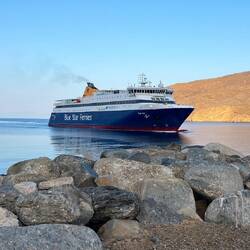 mit der morgenfähre zurück von Santorini auf‘s festland bei wunderbar ruhigem meer…