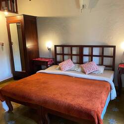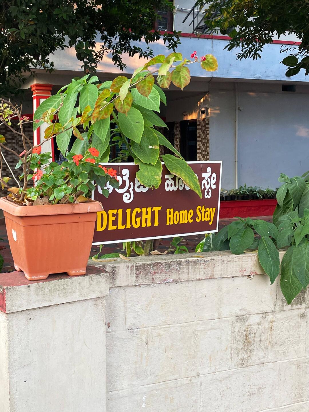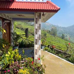 schmackhaftes frühstück auf der garten-veranda des homestay in Madikeri…