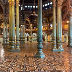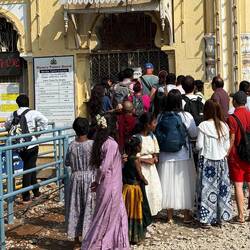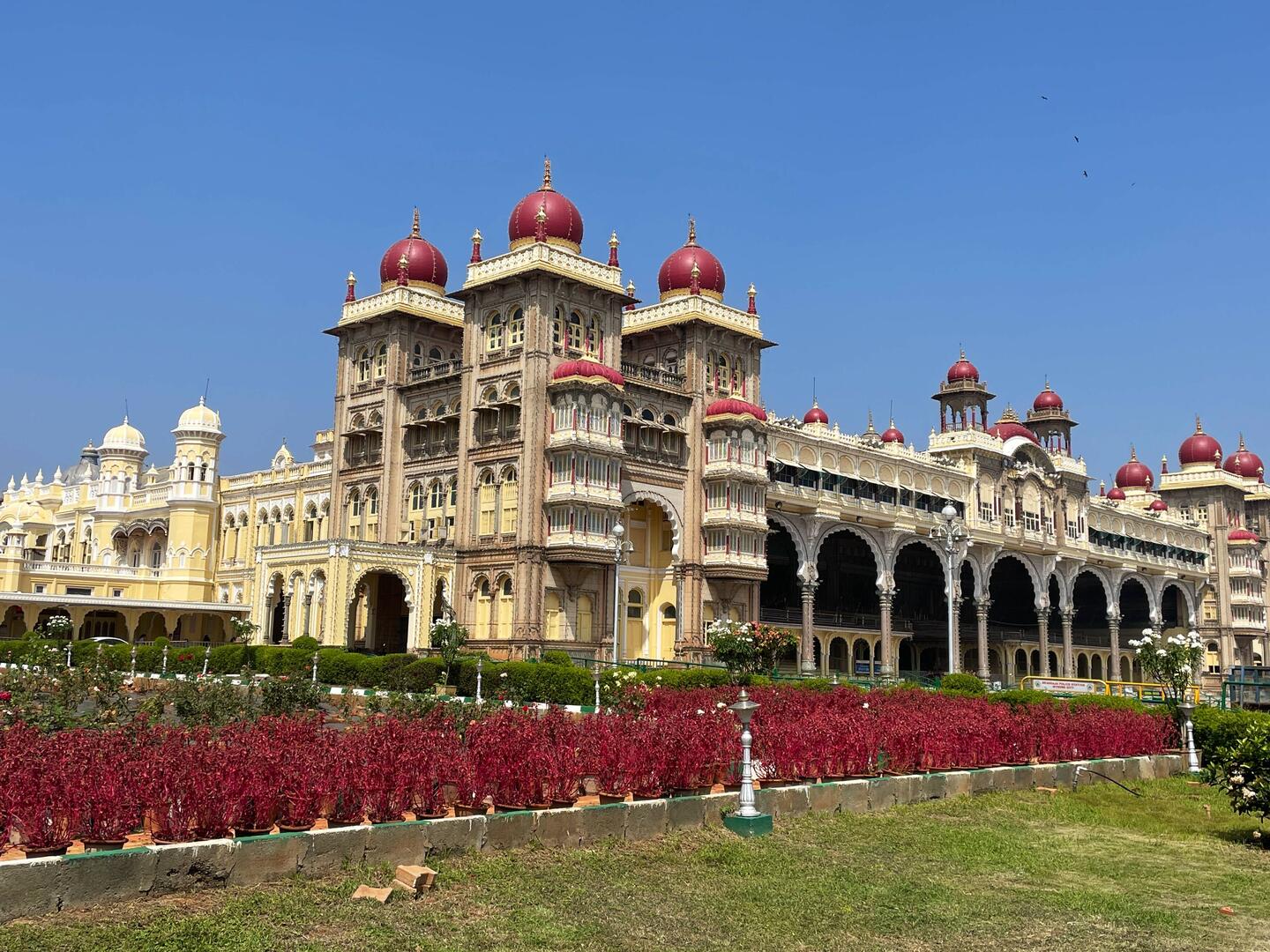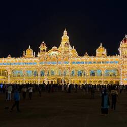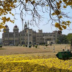 in der angenehm ‚kühlen‘ morgenluft geht‘s zu fuss zum ‚haupteingang‘ für die besichtigung des Mysuru Palace…