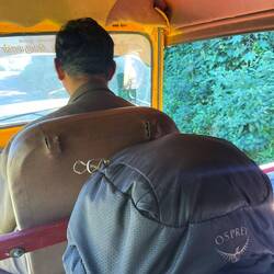 weiterreise in etappen, zuerst von Coonoor nach Coimbatore im lokalbus, eine herausforderung mit den grossen rucksäcken im vollen bus…