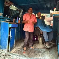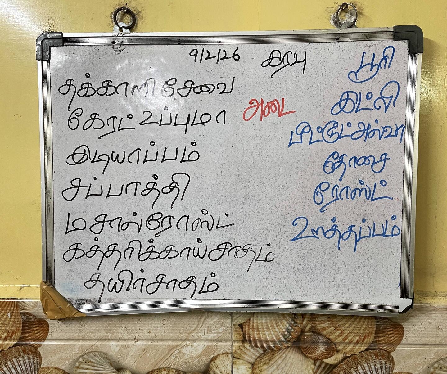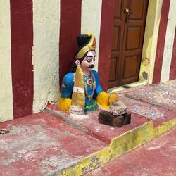 für’s frühstück zum letzten mal in unserem stammlokal in Puducherry, der kellner schaut nach ob noch spuren des gestrigen kopf-anschlagens am eingangsportal vorhanden sind…
