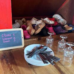 wieder etwas verärgerte frauen im morgentlichen schuhraum…